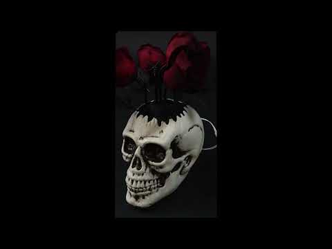 Geef jouw Halloween een macabere twist met de Vaas met Rozen. Deze duistere decoratie combineert schoonheid en horror in één. De klassieke rozen steken fel af tegen de griezelige schedelvaas, waardoor dit een uniek en opvallend detail is voor jouw Halloween-setting.