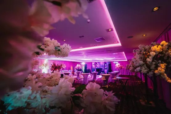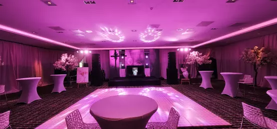 De opbouw kende een strak tijdsschema: pas laat in de avond kregen we toegang tot de volledige zaal. In slechts enkele uren moest de standaard hotelomgeving plaatsmaken voor een magische setting met 30 meter aan ballonslingers, volledige wanddraperie en een technisch hoogwaardig podium voor optredens van o.a. Tino Martin en Jeffrey Heesen.